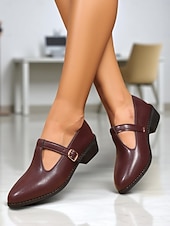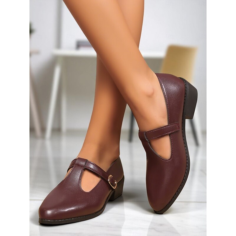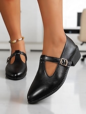 More information about Women's Black Patent T-Strap Mary Jane Shoes – Pointed Toe Low Block Shoes for Office, School and Semi-Formal Events