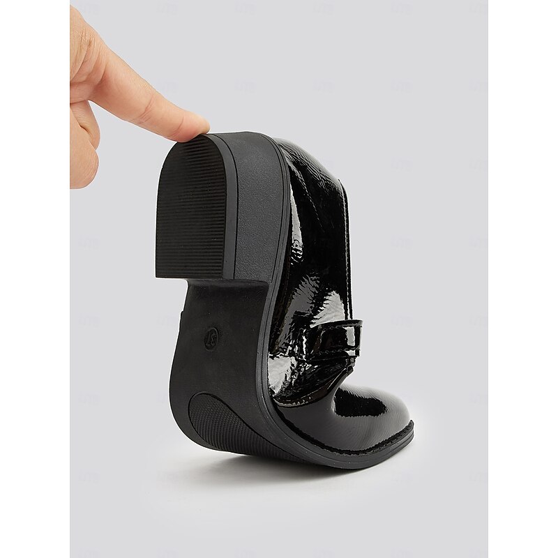 Women's Black Patent T-Strap Mary Jane Shoes – Pointed Toe Low Block Shoes for Office, School and Semi-Formal Events 23