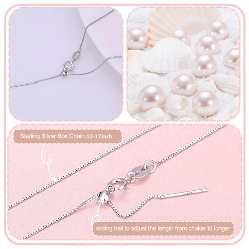 Sterling Silver Pearl Necklace and Earring Set for Girls,8mm White Pink Round Pearls Women Jewelry for Wedding Birthday Christmas Graduation Bridal Shower Gifts for Her,Adjustable 925 Silver Chain(12-18 inch) 6