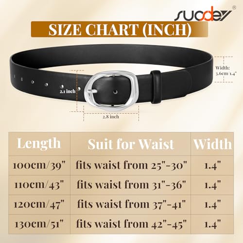 SUOSDEY Leather Belts for Women, Ladies Waist Belt with Liquid Shape Buckle for Jeans Pants Dresses,1.4" width 2