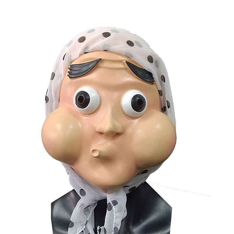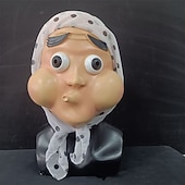 Highlights Product Highlights: [Fabric/Material:] Crafted from durable emulsion, this mask offers a sturdy yet comfortable fit. The sheer fabric scarf with black polka dots is made from a light synthetic material, providing a soft texture that complements the mask's humor. [Fit/Shape:] Designed for easy wearing, the mask comfortably fits the human face, featuring a lightweight structure that ensures ease of use and portability during extended wear. [Design Highlights:] Featuring a cartoonish face with exaggerated features, this humorous mask includes large, rounded cheeks and wide, protruding eyes for a comical effect. The adorned scarf adds an amusing touch, making it a distinctive choice for festive occasions. [Occasions:] Ideal for holiday celebrations, Halloween festivities, costume parties, and other events, this playful mask brings a whimsical element to any gathering, making it a perfect accessory for adding humor and character. [Size Range/Suggestions:] Suitable for wearers of all ages, this mask is designed to offer a comfortable and adaptable fit for most face shapes, ensuring a flexible choice for a variety of occasions.