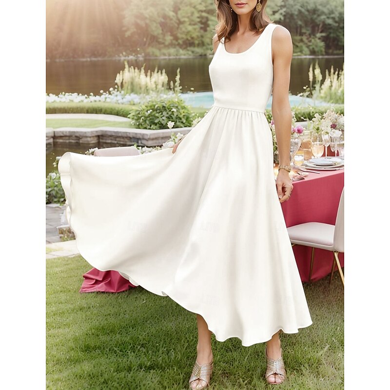 HOT ! Women's Midi Dress Sundress A Line Dress Off The Shoulder Dress Vacation Casual Beach Outdoor Party Going out Regular Fit Solid Color Graphic Plain Sleeveless U Neck White Pink Wine Navy Blue Summer