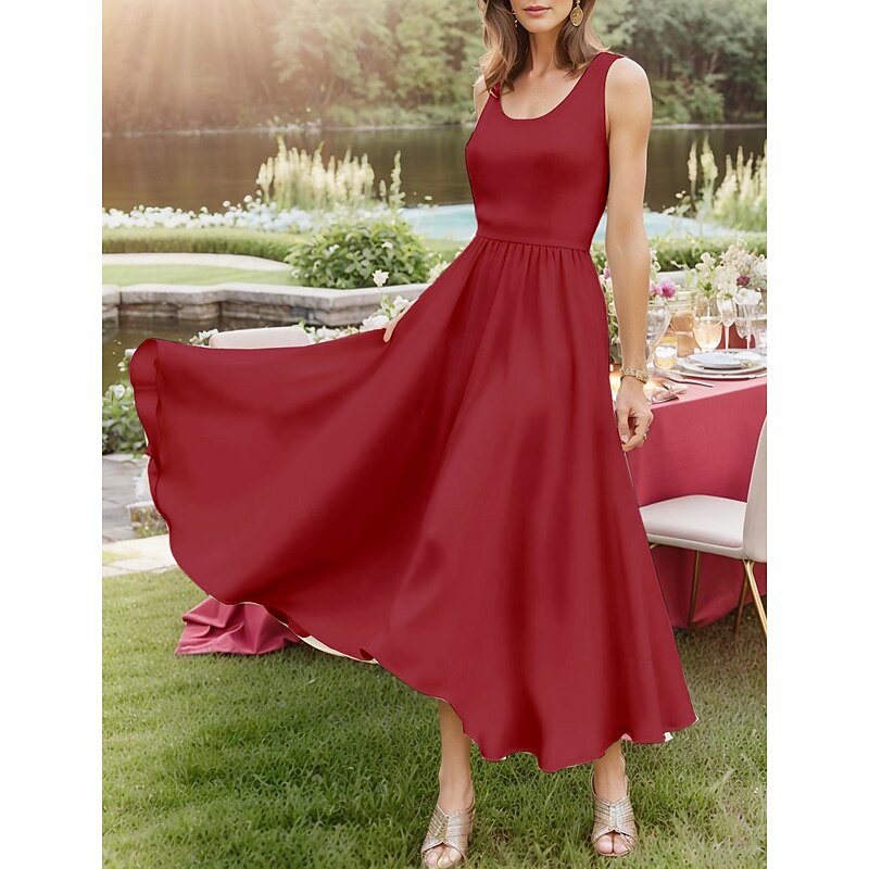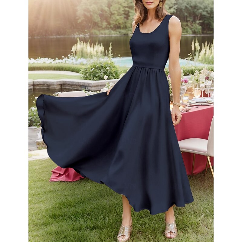 More information about Women's Midi Dress Sundress A Line Dress Off The Shoulder Dress Vacation Casual Beach Outdoor Party Going out Regular Fit Solid Color Graphic Plain Sleeveless U Neck White Pink Wine Navy Blue Summer