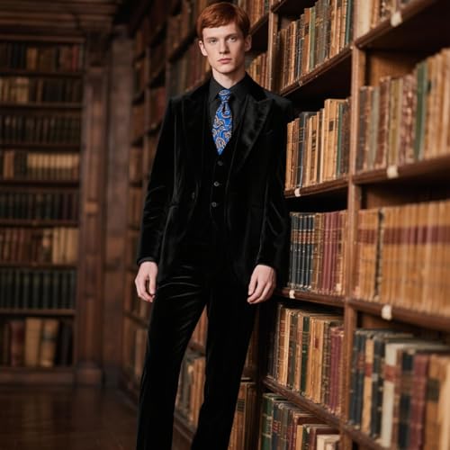 More information about Retro Mens Velvet Suits Slim Fit Peak Lapel Tuxedo 3 Piece Satin Blazer Vest Pants Set Prom Party Banquet Men Suit Wedding