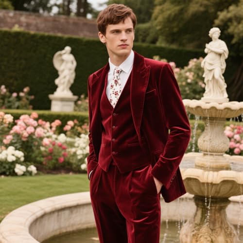• 3 Piece Suits This men's suit velvet set is made of high quality fabric, which is soft, lightweight, breathable and slightly elastic. comfortable to wear and move freely.