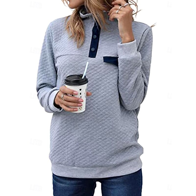 Women's Texture Sweatshirt Waffle Sweatshirt Casual Plain Dailywear Turtleneck Buttons Long Sleeve Black Pink Gray Fall Winter 10