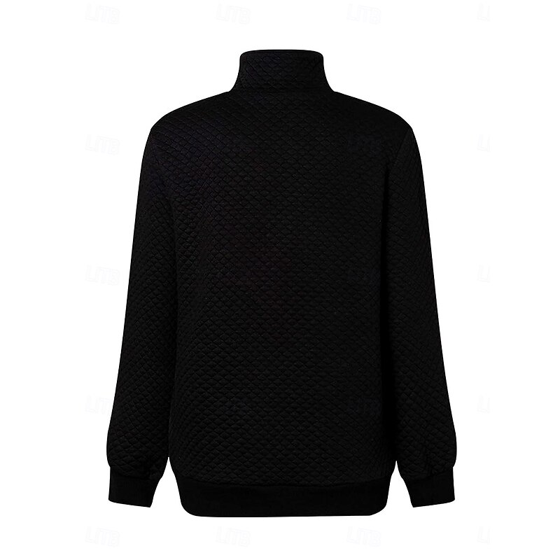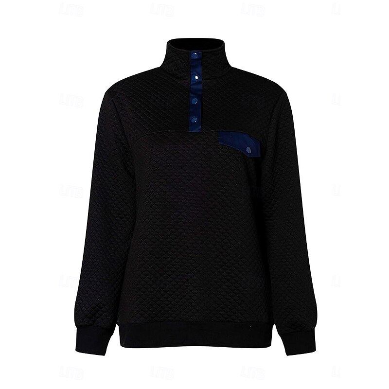 Highlights [Fabric] Crafted from a durable polyester blend, this women's sweatshirt offers a micro-elastic quality that ensures comfort and ease of movement. The quilted texture adds a cozy and stylish touch, making it ideal for fall and winter wear. [Fit] Featuring a regular fit that flatters a variety of body types, this sweatshirt provides a relaxed and comfortable silhouette suitable for casual outings or lounging at home. [Design Highlights] The pullover boasts a chic turtleneck design with a partial button placket, adding a sophisticated flair. The subtle pink, gray, and black options are versatile, while the long sleeves offer warmth and versatility in styling. [Occasions] Ideal for daily wear during the fall and winter seasons, this sweatshirt transitions seamlessly from a casual day out to a cozy evening at home. Pair it with jeans or leggings for a laid-back, chic look. [Size Range] Available in sizes S through 2XL, this sweatshirt accommodates a range of shapes and sizes, ensuring a comfortable and personalized fit for every wearer.