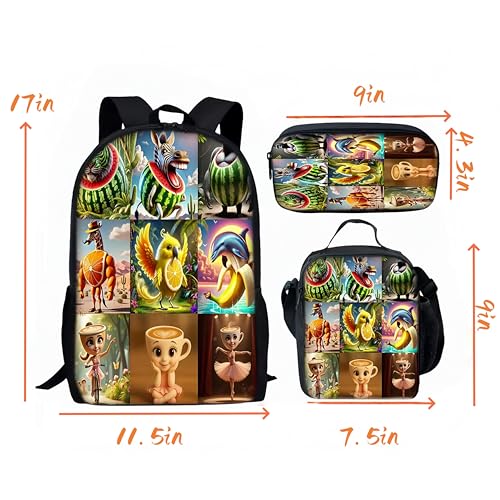 HOT ! 3PCS Italian Brainrot Large Backpack,17in Casual Shoulder Waterproof Lightweight Daypack Gifts (Color 2)