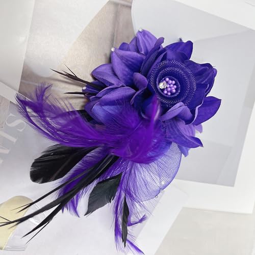 Elegant Flower Brooch for Women Wedding Party Dance Banquet Pins Feather Flower Fascinator Lady Floral Hairpins Dress Suit Lapel Pin Ceremony Accessories Corsage Brooches Vintage Jewelry Gifts 5