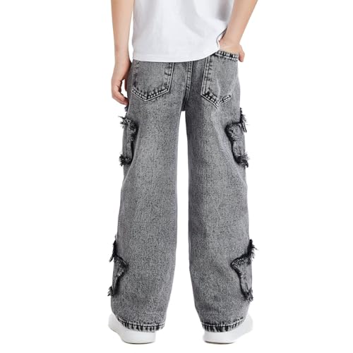 Boys Y2K Baggy Jeans Kids Star Graphic Ripped Wide Leg Elastic Waist Denim Pants with Pockets Hip Hop Streetwear 4