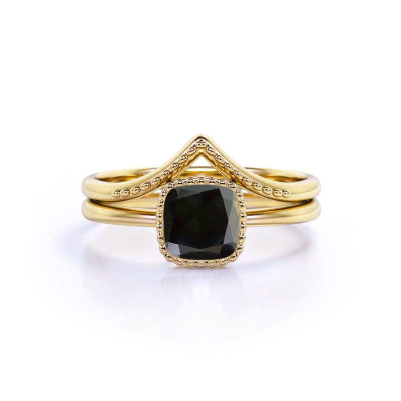 Black Onyx Wedding Ring Set for Women 925 Sterling Silver 10K 14K 18K Gold Vintage Bridal Ring Set with 1CT Cushion Cut Black Onyx Engagement Ring Set for Her 1