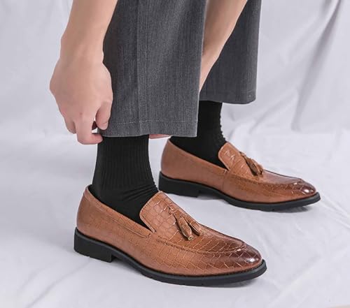 Men'S Classic Printed Oxford Loafers,Fashion Tassel Pointed Slip-On Business Dress Shoes,Comfortable Non-Slip Wedding Party Groom Shoes 5