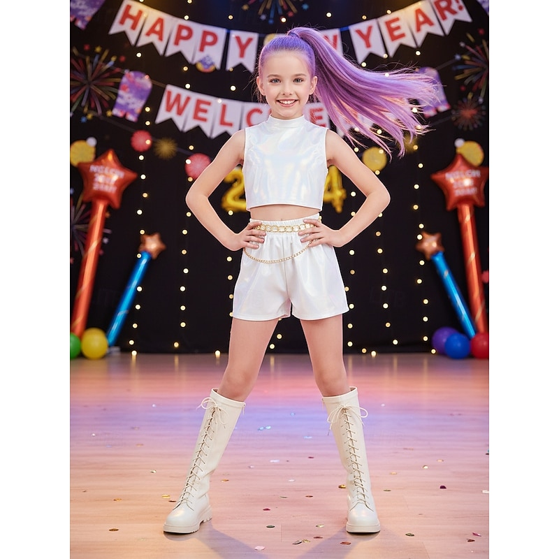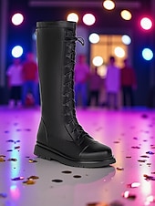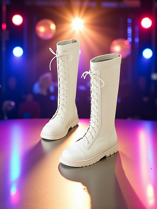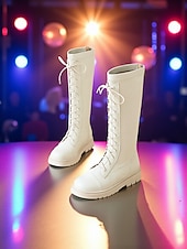 More information about Korean Idol Inspired Pop Star Costume Shoes Girls' White Knee High Lace-Up Boots Fashion Performance Footwear for Dance and Stage Shows