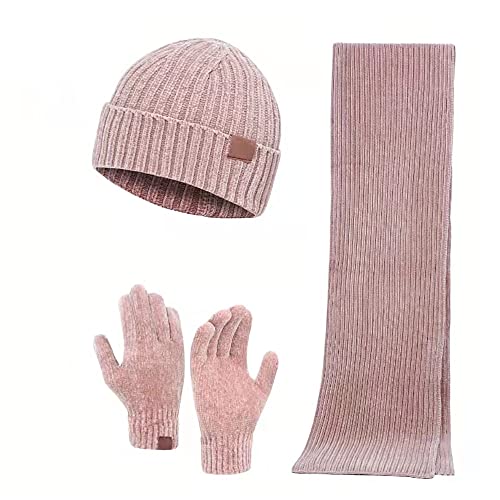 Chenille 3-Piece Set Warm Winter Beanie Hat, Scarf, Touch Screen Gloves Winter Set 3
