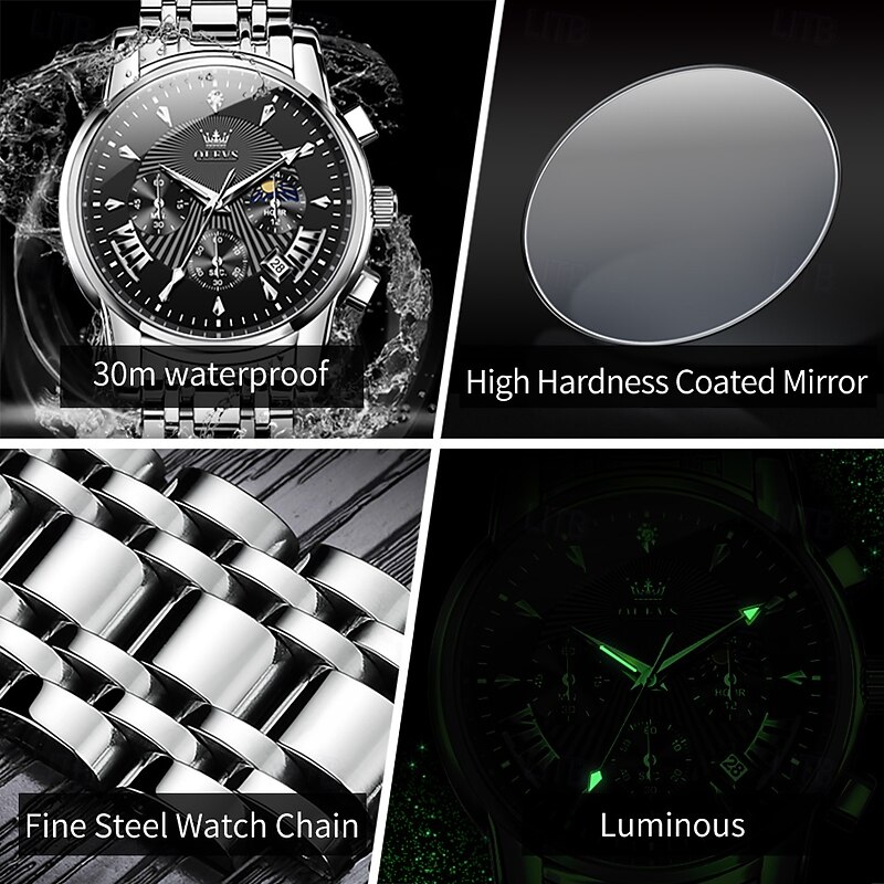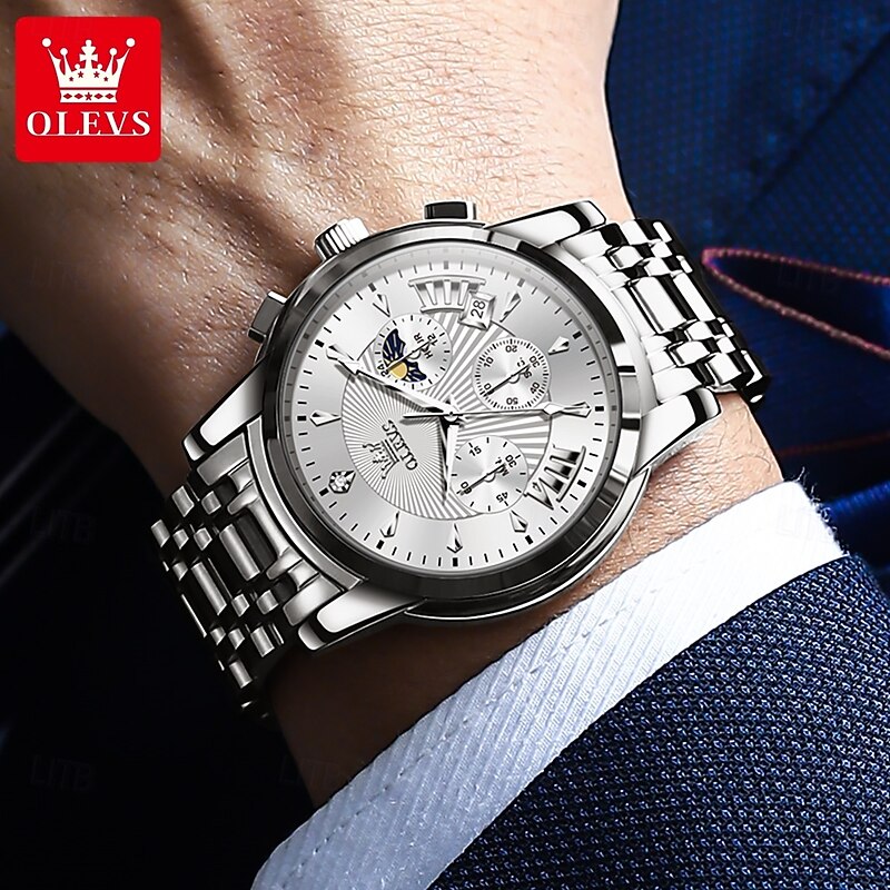 $41.99 - OLEVS Men Quartz Watch Fashion Casual Wristwatch Moon phase Luminous Calendar Chronograph Steel Watch 2025. Shop for cheap Quartz Watches online? Buy at lightinthebox.com on sale today!
