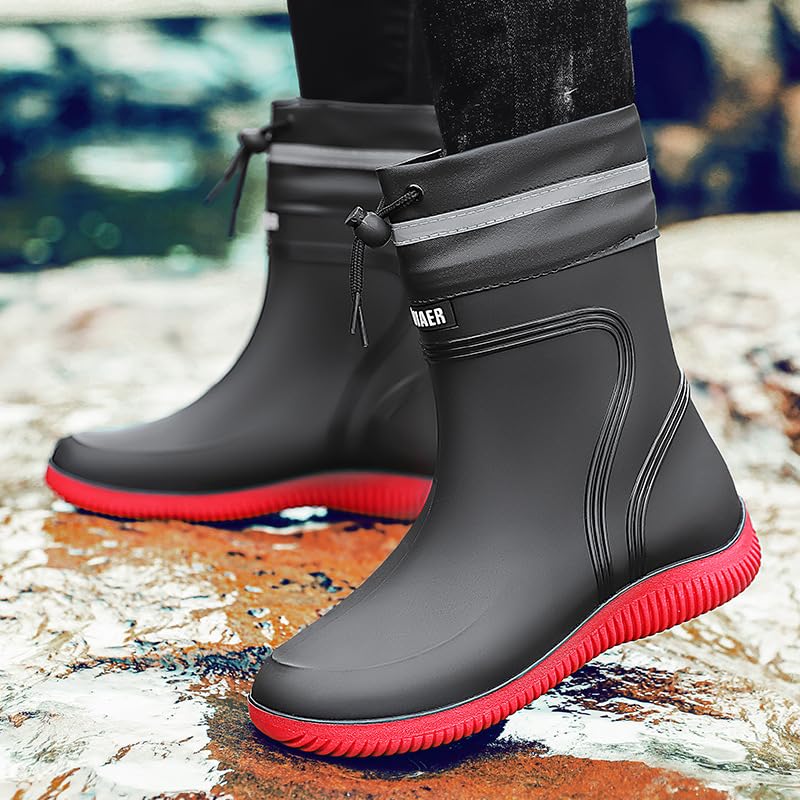 Men Wellington Boots Outdoor Garden Waterproof Ankle Rain Shoes Red 6.5 US 4