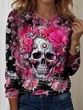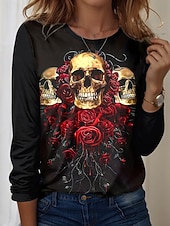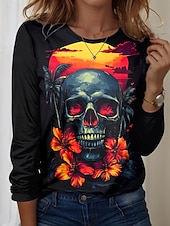 More information about Halloween Women's T Shirt Skulls Graphic Vintage Fashion Casual Long Sleeve Crew Neck Regular Tops Daily Weekend Print Red Purple Orange Summer Spring Fall