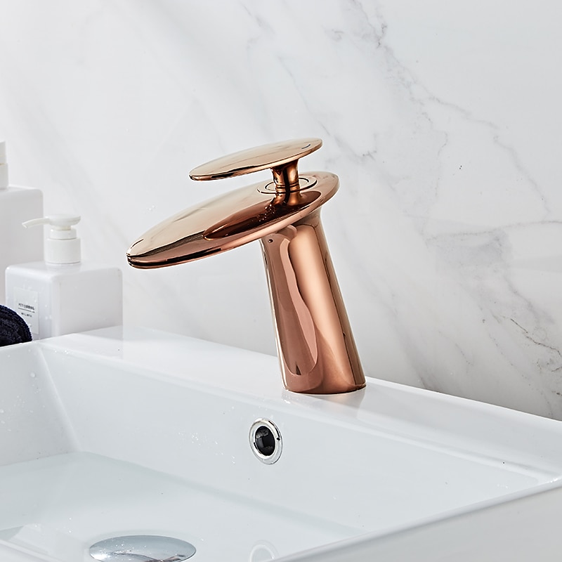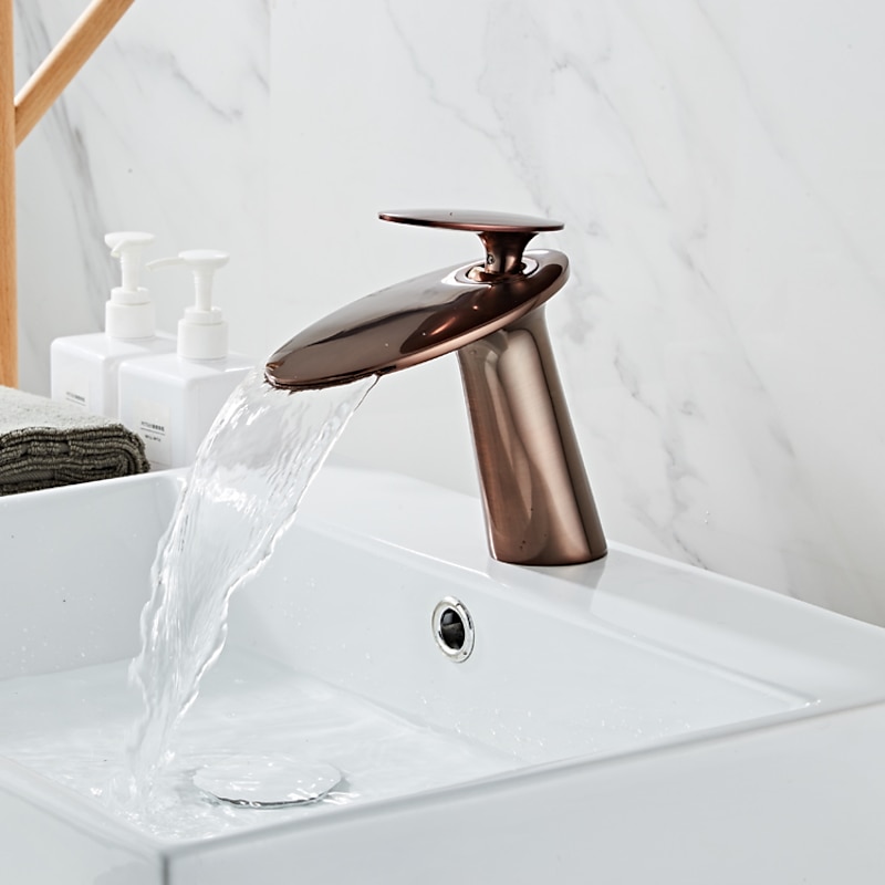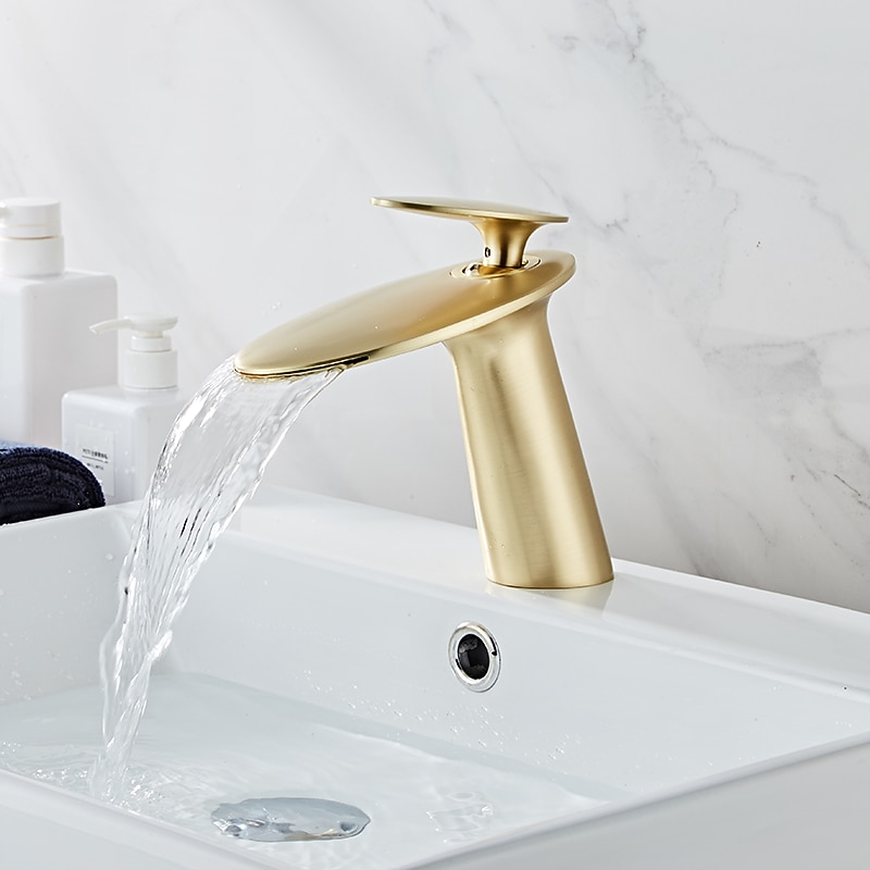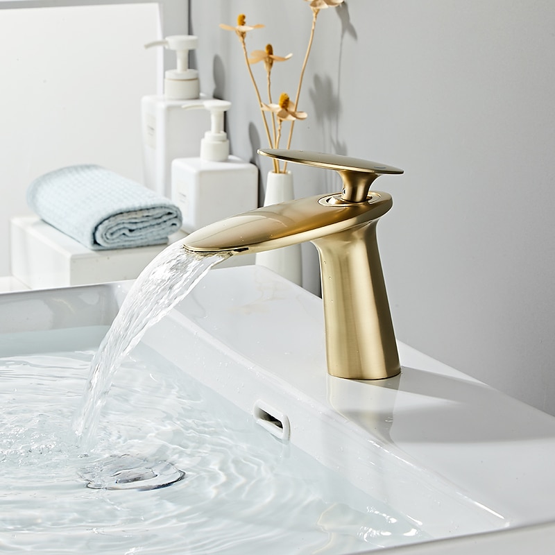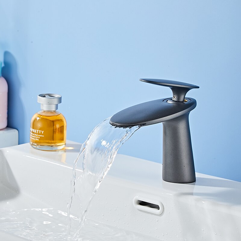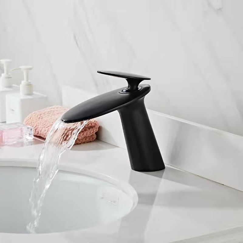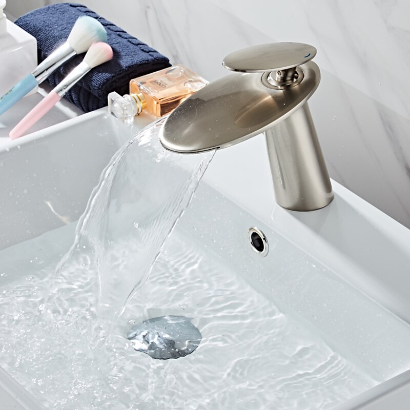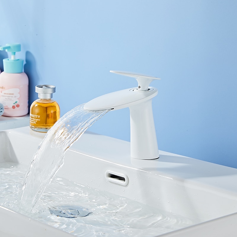 HOT ! Bathroom Sink Faucet, Brass Waterfall Single Handle One Hole Modern Style Bath Taps with Hot and Cold Water