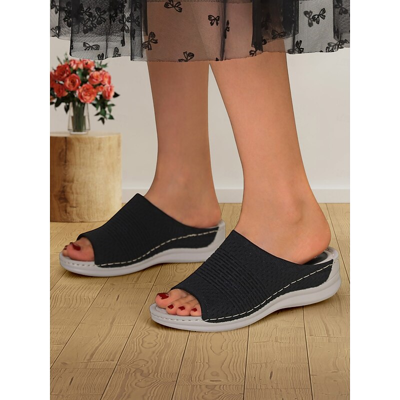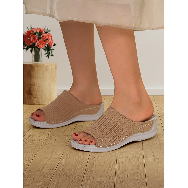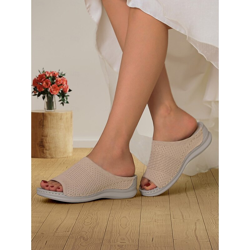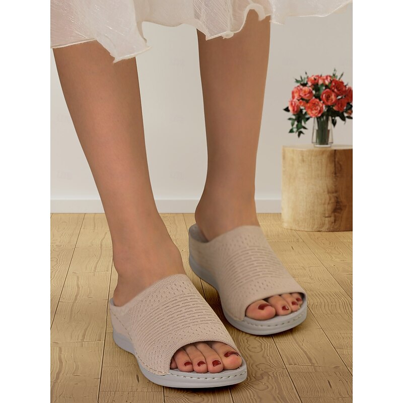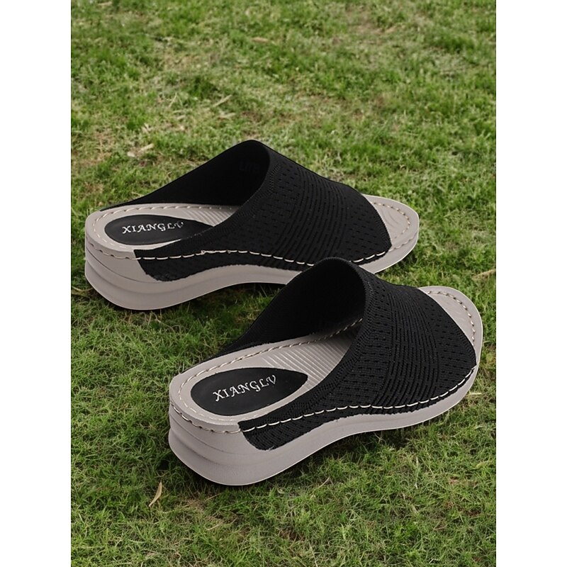 HOT ! Women's Slip-On Sandals with Woven Knit Upper, Open-Toe Design and Cushioned Sole for Casual Summer Wear and Daily Comfort
