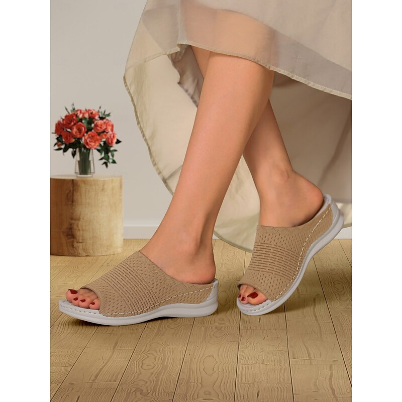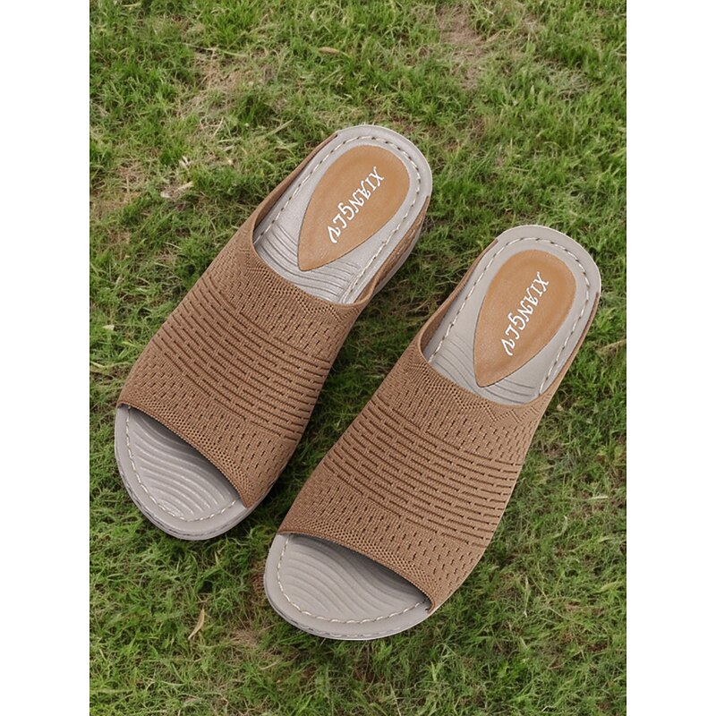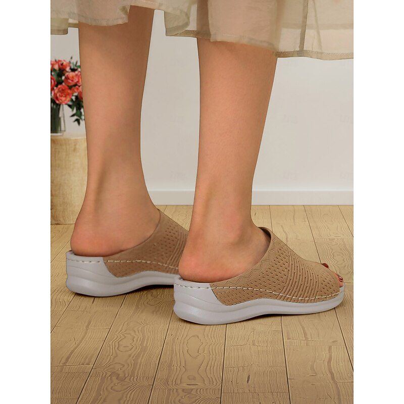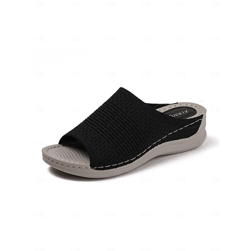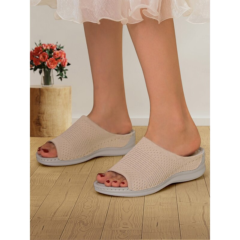 HOT ! Women's Slip-On Sandals with Woven Knit Upper, Open-Toe Design and Cushioned Sole for Casual Summer Wear and Daily Comfort