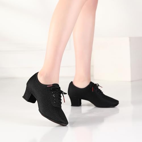Women's Dance Shoes Close Toe Low Heel Lace up Latin Salsa Ballroom Practice Teaching Shoes 6