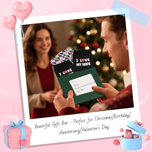 • 【Unique Design】These romantic socks for him feature the phrase "I Love My Wife" along with a heart design, offering a simple yet interesting design. It's a charming way to express deep affection while adding a touch of fun and warmth. This warm design not only stands out but also brings a smile in everyday life, making it a perfect way to share your love
