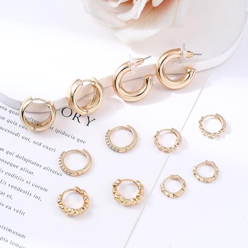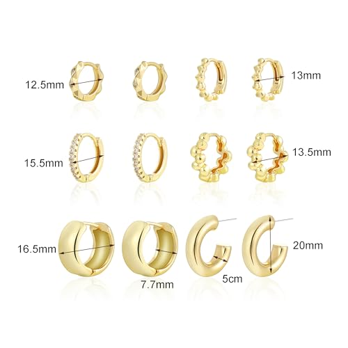 6 Pairs Gold Hoop Earrings Set for Women, 14K Gold Plated Small Huggie Hoops Earrings Hypoallergenic, Lightweight Tiny Cartilage Piercings Earrings Jewelry for Women Gifts. 6