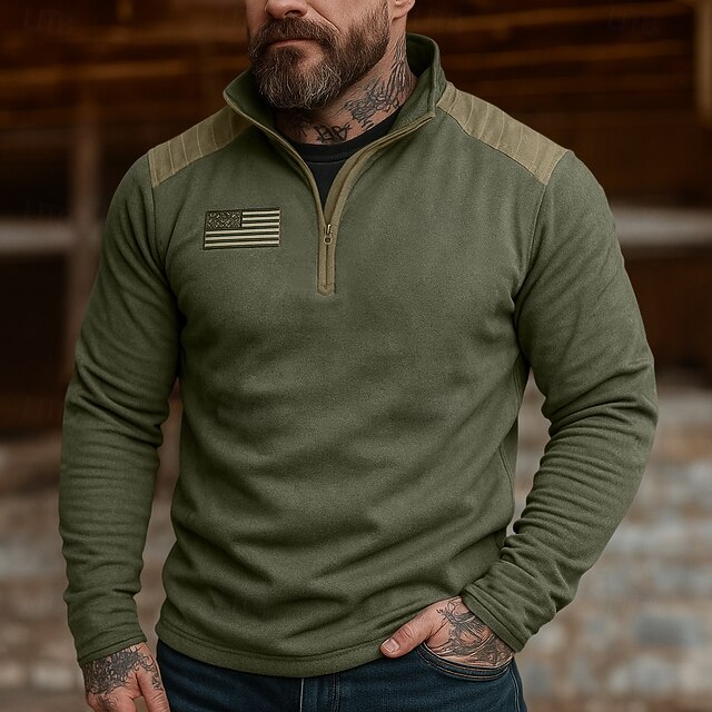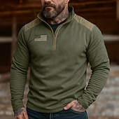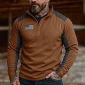 More information about Men's Sweatshirt Fleece Hoodie Quarter Zip Sweatshirt Tactical Hoodie Reddish brown Army Green Khaki Standing Collar Plain Zipper Sports & Outdoor Casual Daily Streetwear Cool Sportswear Spring