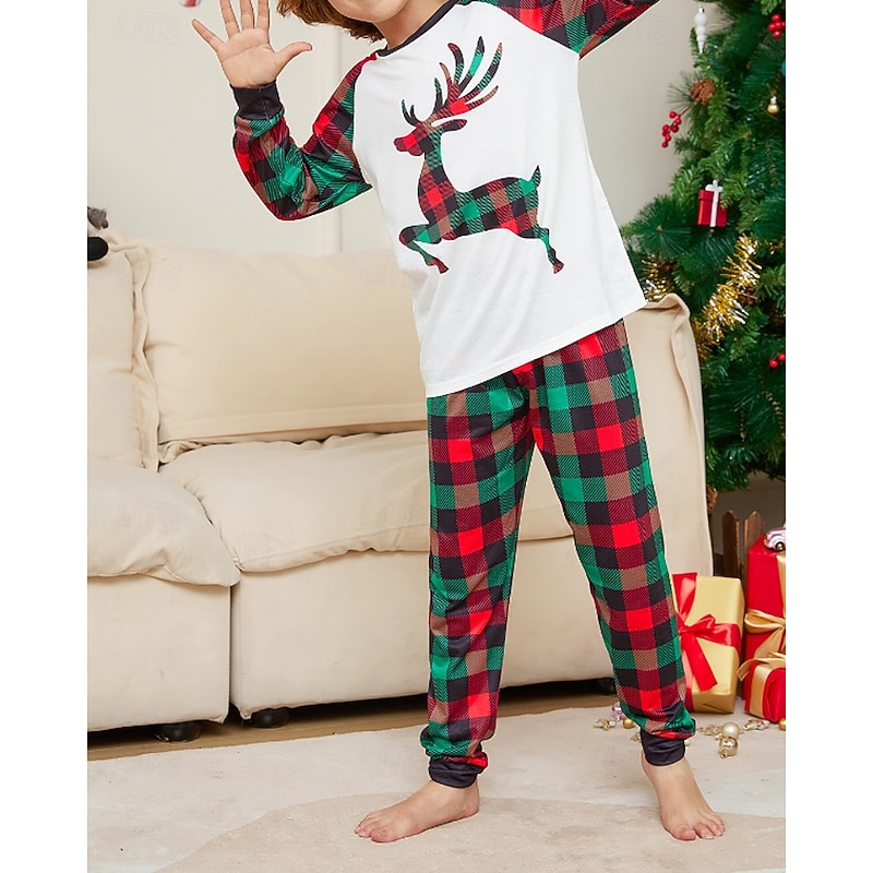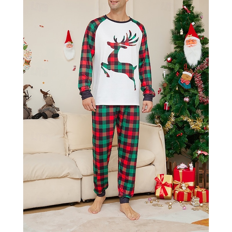 Family Pajamas Plaid Christmas Pattern Home Patchwork White Long Sleeve Active Matching Outfits 1