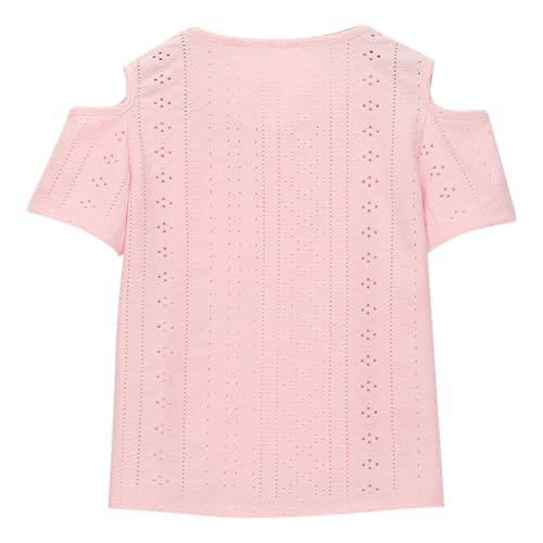 Teen Girls Cold Shoulder Cutouts Basic T Shirts Short Sleeve Hollow Out Tunic Blouses Summer Breathable Casual Cool Kid Tops 6