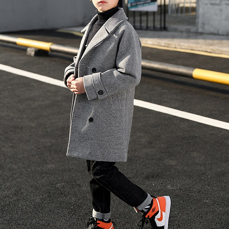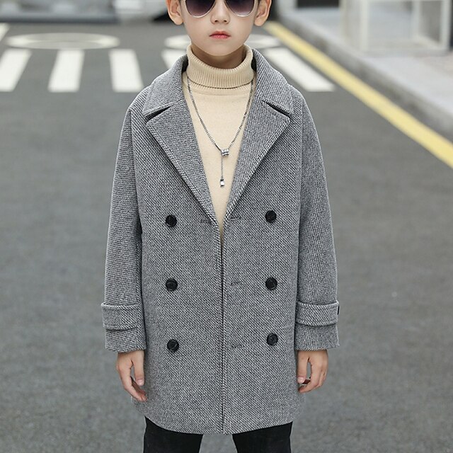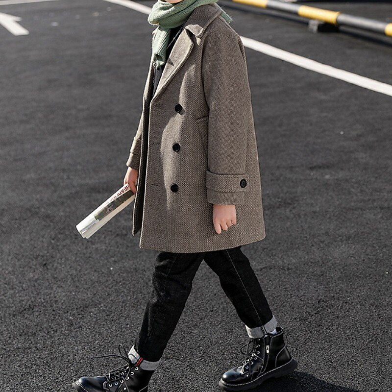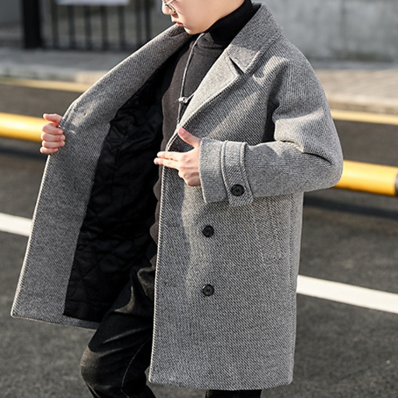 More information about Boys 3D Plain Woolen Coat Long Sleeve Fall Winter Streetwear Basic Kids 4-13 Years Daily Regular Fit