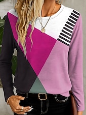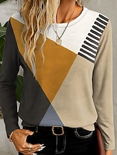 More information about Women's T Shirt Graphic Geometry Vintage Stylish Casual Long Sleeve Crew Neck Regular Tops Daily Print Yellow Blue Purple Green Spring Fall Winter