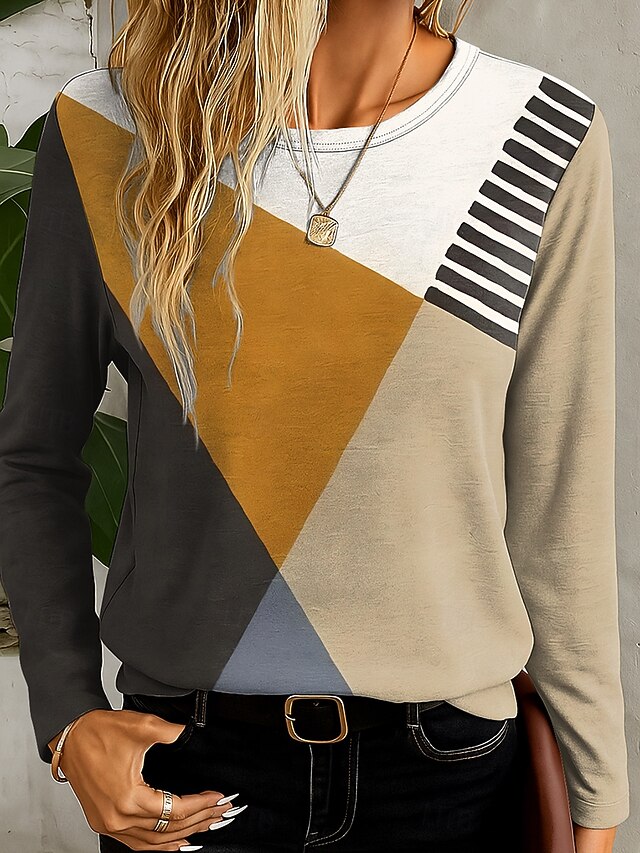 Women's T Shirt Graphic Geometry Vintage Stylish Casual Long Sleeve Crew Neck Regular Tops Daily Print Yellow Blue Purple Green Spring Fall Winter 7
