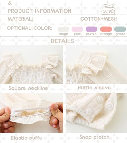 • 【Product details】Baby girls one year old birthday outfit.Long sleeve Embroidery Floral Romper.Ruffle tulle romper dress with headband set.Made of high quality fabric and tulle,soft and comfortable.Waist folds are extremely elastic and breathable.Baby girls letter embroidery dress,cake smash clothes for photo shoot.Give your girl a beautiful look on her first birthday.