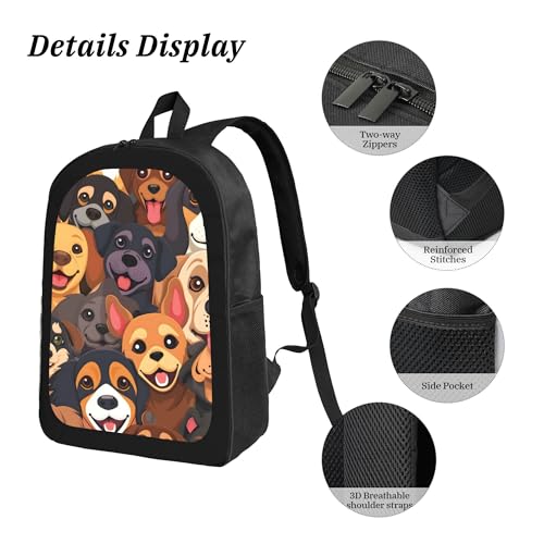 Cute Cartoon Animal Dog Large 3-Piece Backpack Set with Insulated Lunch Box & Pencil Case Waterproof 17 Inches Backpacks Bag Back Packs Pencil Pouch Lunch Bag for Men Women 3 Pcs (Black) 5