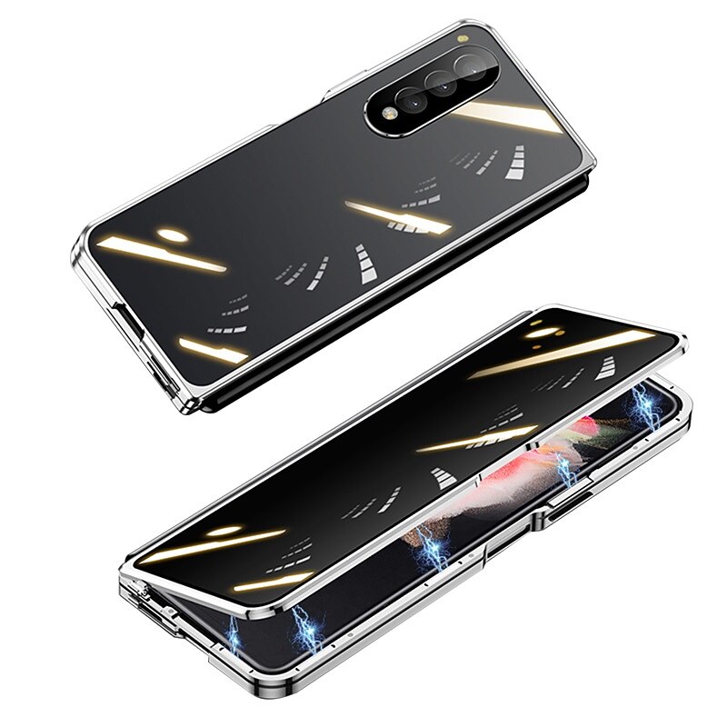 More information about Phone Case For Samsung Galaxy Z Fold 5 Z Fold 4 Z Fold 3 Magnetic Adsorption Flip Mirror Transparent Transparent Tempered Glass Metal