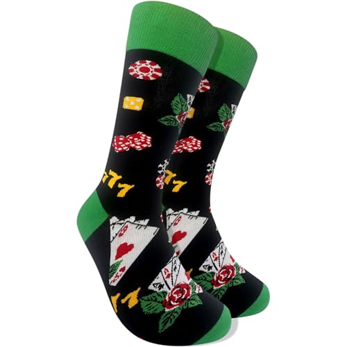 • ✅ BOLD DESIGNS - Our casino socks for men showcase a variety of vibrant and playful gambling-themed patterns. From classic card suits to lucky dice, these socks are a surefire way to win big on personality.