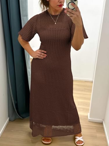 HOT ! Fisoew Womens Swimsuit Cover Up Eyelet Dress Summer 2 Piece Hollow Out Maxi Dresses Vacation Beach Outfits