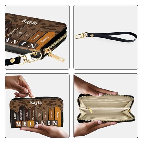 HOT ! Personalized Leather Wallet for Women – Custom African Pride Clutch with Name – Elegant African Queen Gift – African American Art Wallet – Gift for Mom (Melanin)