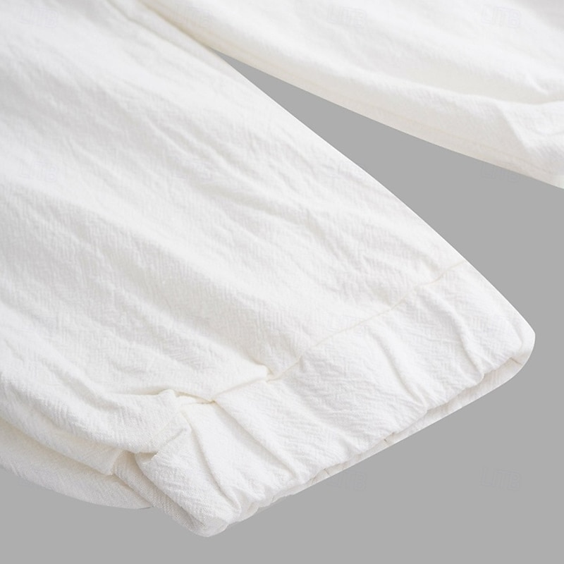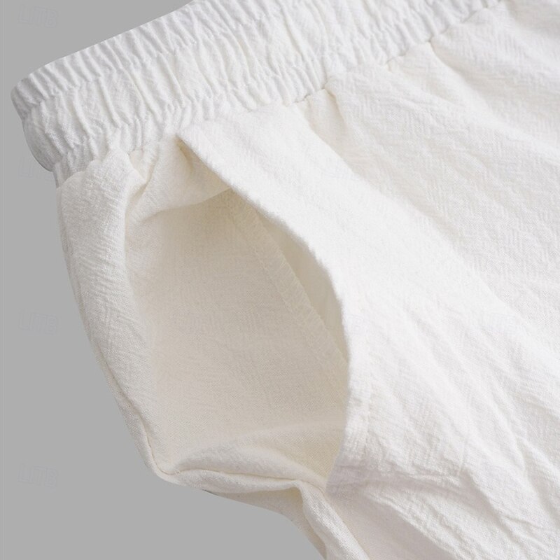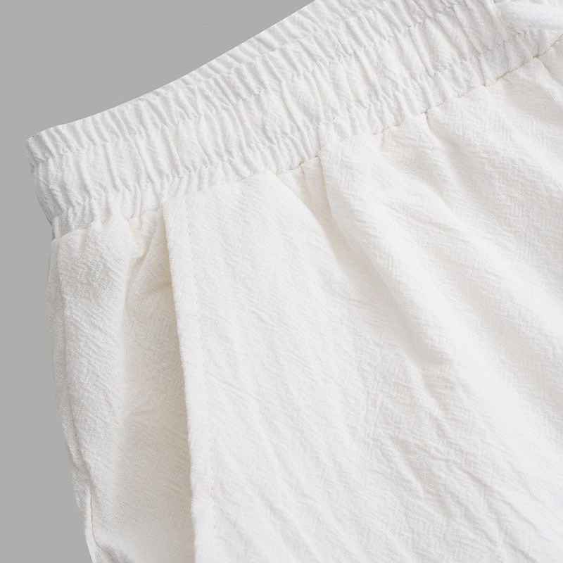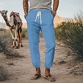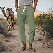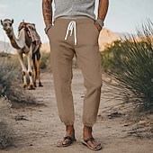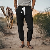 More information about Men's Linen Pants Trousers Summer Pants Elastic Waist Straight Leg High Rise Solid Color Comfort Breathable Full Length Daily Streetwear Retro Vintage Black White High Waist Inelastic