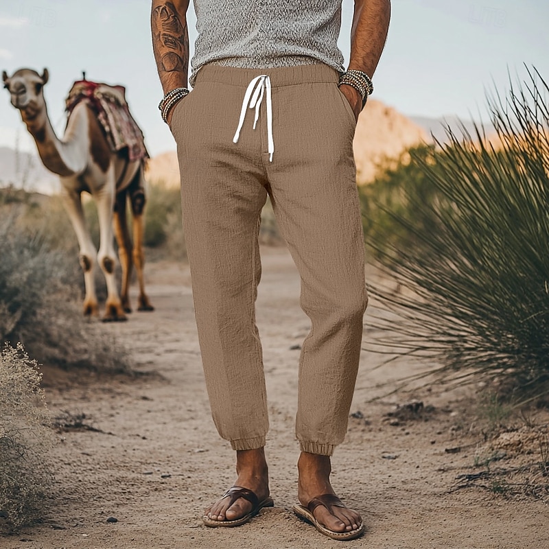 HOT ! Men's Linen Pants Trousers Summer Pants Elastic Waist Straight Leg High Rise Solid Color Comfort Breathable Full Length Daily Streetwear Retro Vintage Black White High Waist Inelastic