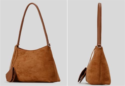 Vintage Faux Suede Shoulder Bag for Women Small Bucket Crossbody Tote Purse Ladies Dating Handbags Satchel 4