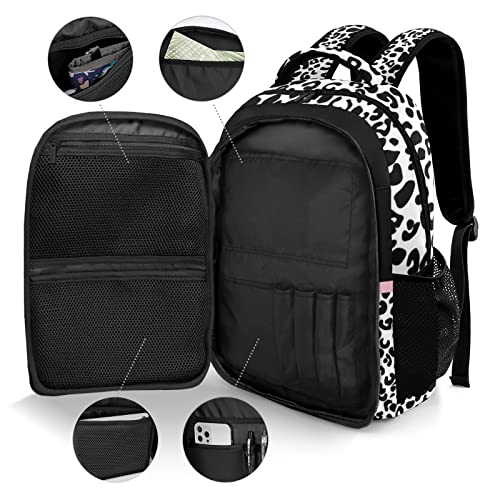 Leopard Print Pink Black Bow Backpack Multifunctional Waterproof Laptop Bag for Travel Gift 6