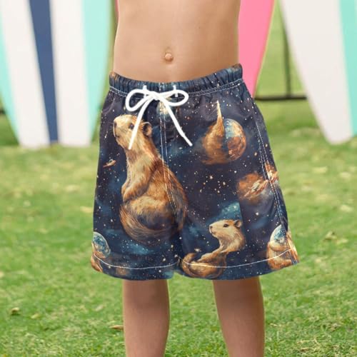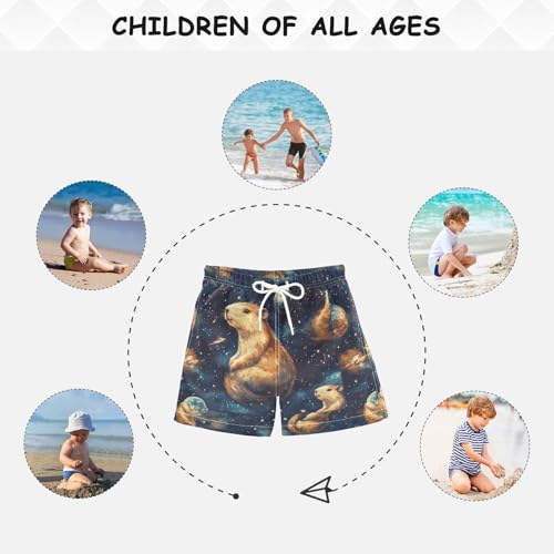 Pigsaly Boys' Swim Board Shorts Capybara Space Earth Boy's Swim Trunks Kids Swimwear 5T Multicolor 5