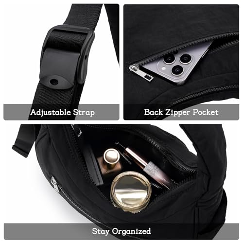 • Lightweight: Our puffer Shoulder bag weigh just 0.88 lbs, it's incredibly lightweight, you can carry it all day without straining your shoulders. Measuring 29cm x 12cm x 17.5cm (11.4" x 4.7" x 6.9"), this shoulder crescent bag features a zippered main compartment, an exterior zippered pocket, 2 interior mesh bag, and 2 side pockets. It can easily keep your belongings. With this bag, you'll have everything you need at your fingertips, making it perfect for work, travel, or a night out