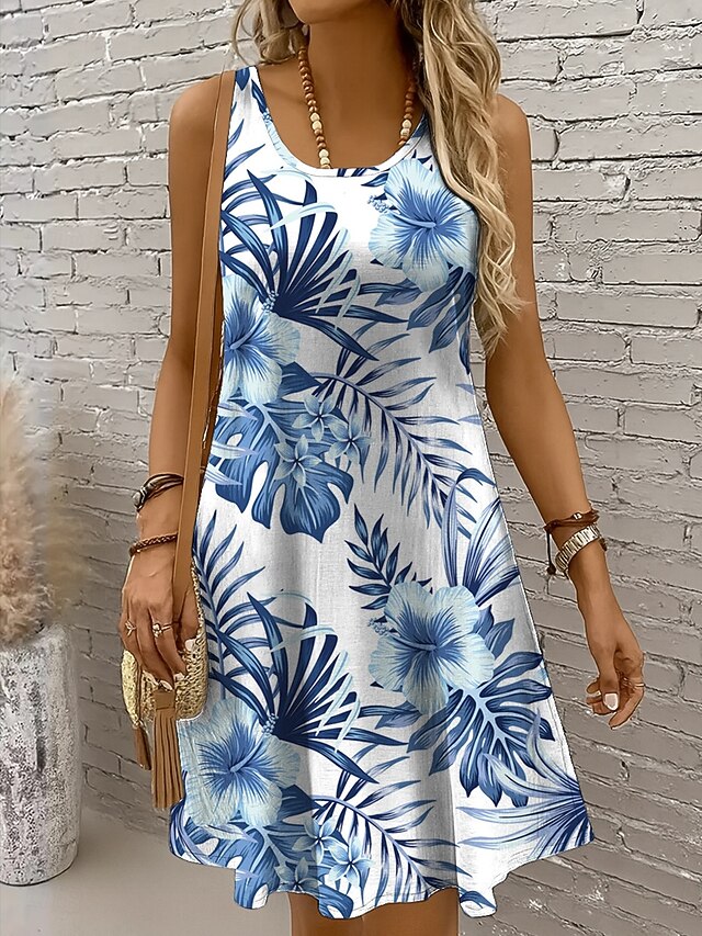 Women's Mini Dress Sundress A Line Dress Summer Dress Vacation Casual Wedding Home Party Regular Fit Floral Graphic Leaf Sleeveless U Neck Yellow Red Blue Purple Summer Spring 11