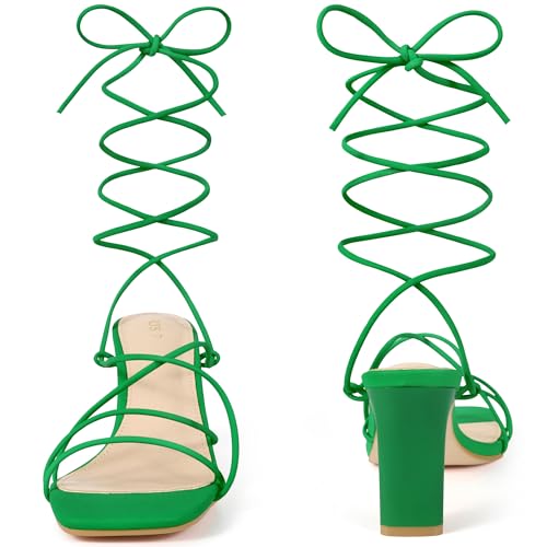 Perphy Women's Chunky Heel Wrap Up Strappy Heel Sandals with Square Toe 1