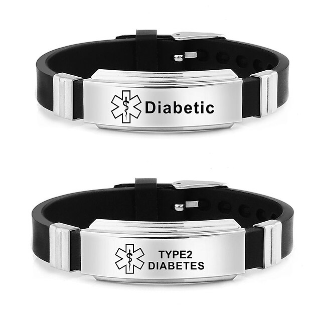 More information about Black Silicone Bracelet Sugar Disease Bracelet Minimalist Stainless Steel Star Of Life Medical Logo Silicone Sports Bracelet for Super Bolw