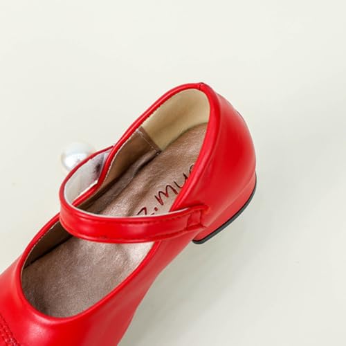 Girls Low Heels PU Leather Princess Dress Shoes Pearl Mary Jane Pump for Wedding Party 6