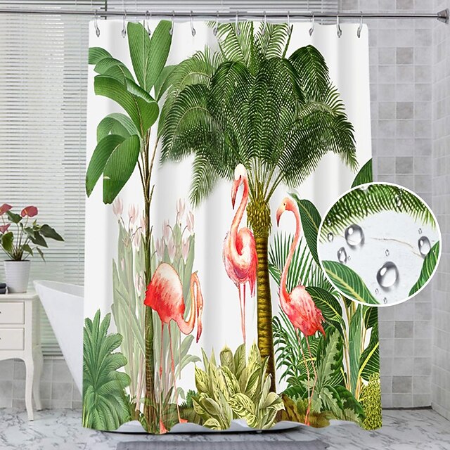 More information about Shower Curtain with Hooks 180cm*180cm(70"*70") Polyester Washable Waterproof Tropical Plant Bird Pattern Bathroom Bathtub Decor